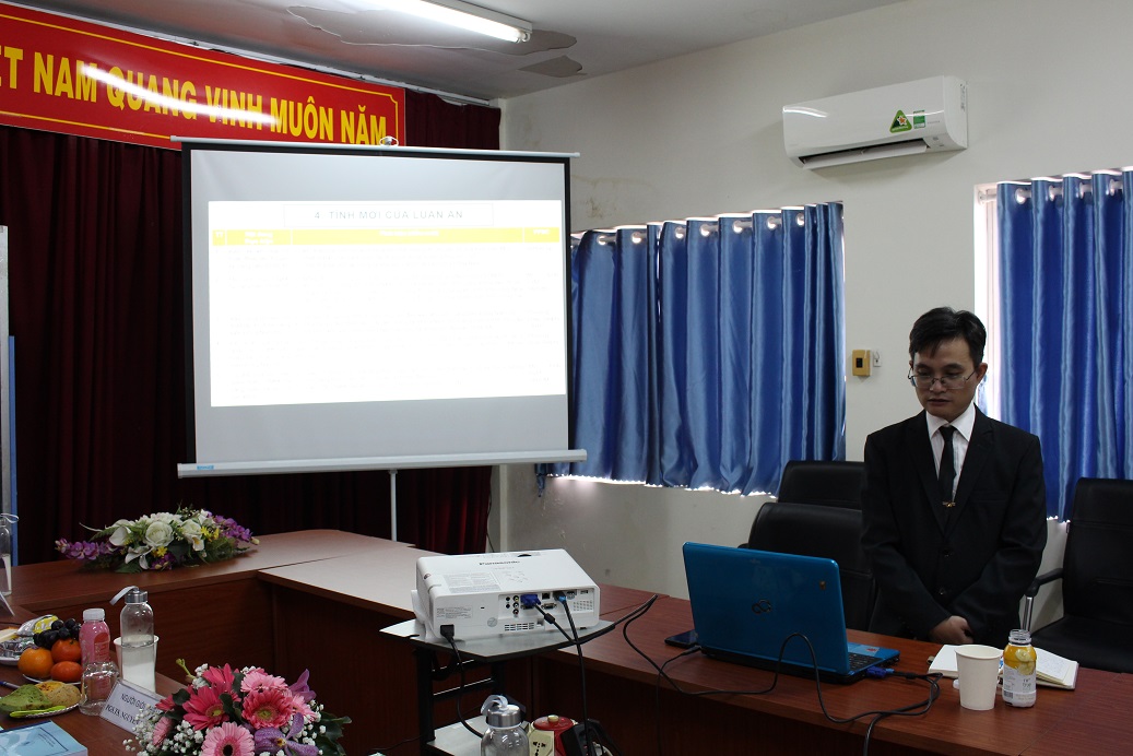 Hình 2. NCS Phạm Thanh Tuấn báo cáo LATS trước Hội đồng đánh giá LATS cấp ĐVCM
