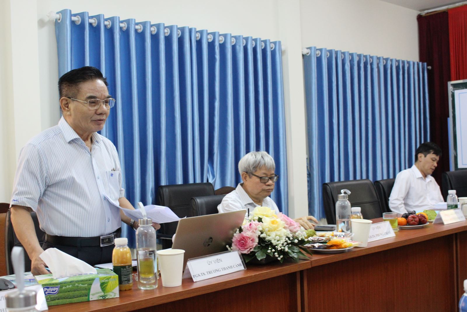 Hình 1. GS.TS. Lê Thanh Hải - Chủ tịch Hội đồng (đánh giá LATS cấp ĐVCM) điều khiển phiên họp