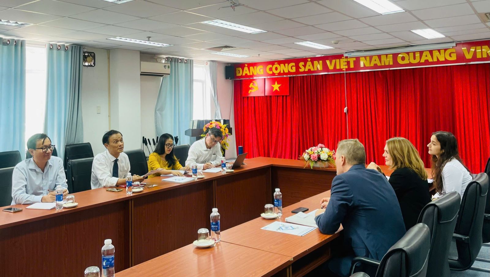 Về phía Viện, tham dự buổi làm việc có GS.TS. Lê Thanh Hải – Viện trưởng; PGS.TS. Châu Nguyễn Xuân Quang – Viện phó; PGS.TS. Đỗ Thị Thu Huyền – Trưởng phòng Quản lý Khoa học và Quan hệ Đối ngoại; cùng PGS.TS. Nguyễn Hồng Quân – Viện trưởng Viện Nghiên cứu Phát triển Kinh tế tuần hoàn, đồng thời sinh hoạt chuyên môn tại Trung tâm Quản lý Nước và Biến đổi khí hậu.